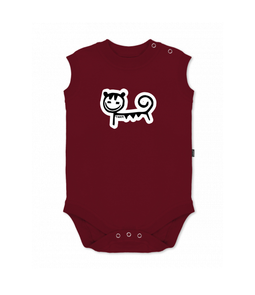 Dětské body bez rukávů pro děti s potiskem 476 TIGER v barvě DARK RED