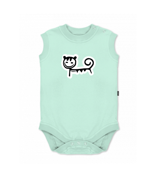 Dětské body bez rukávů pro děti s potiskem 476 TIGER v barvě MINT