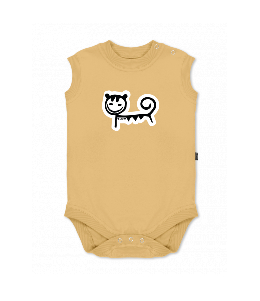 Dětské body bez rukávů pro děti s potiskem 476 TIGER v barvě MUSTARD