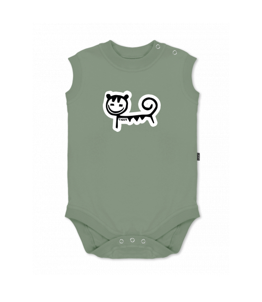 Dětské body bez rukávů pro děti s potiskem 476 TIGER v barvě OLIVA
