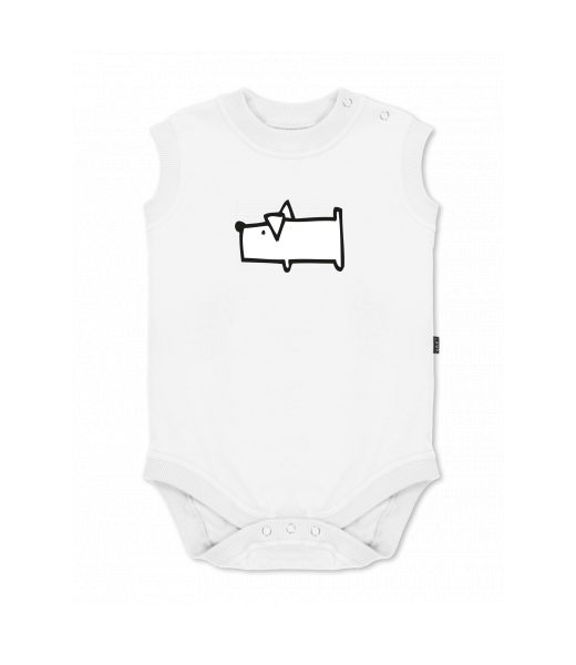 Dětské body bez rukávů pro děti s potiskem 482 DOG v barvě WHITE