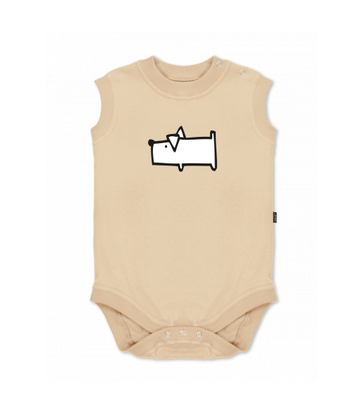 Dětské body bez rukávů pro děti s potiskem 482 DOG v barvě CARAMEL