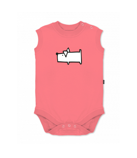 Dětské body bez rukávů pro děti s potiskem 482 DOG v barvě LOSOSOVA