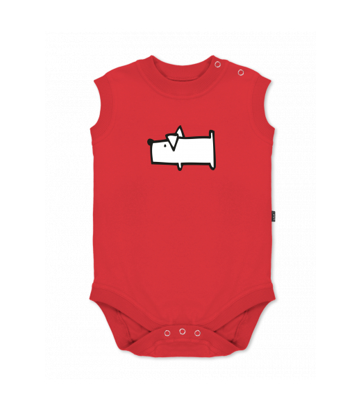 Dětské body bez rukávů pro děti s potiskem 482 DOG v barvě RED