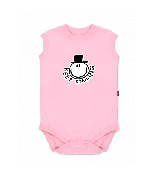 Dětské body bez rukávů pro děti s potiskem 517 KEEP SMILING v barvě BABY PINK