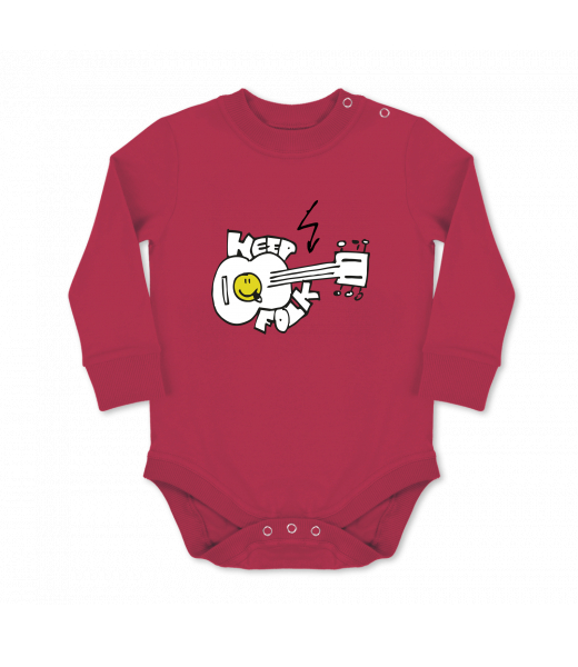 Dětské body dlouhý rukáv pro děti s potiskem 441 KEEP FOLK v barvě CHILLY PEPPER RED