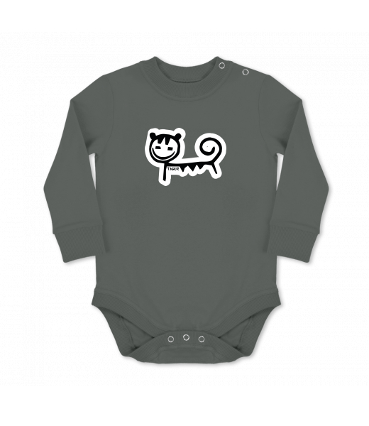 Dětské body dlouhý rukáv pro děti s potiskem 476 TIGER v barvě DARK GRAY