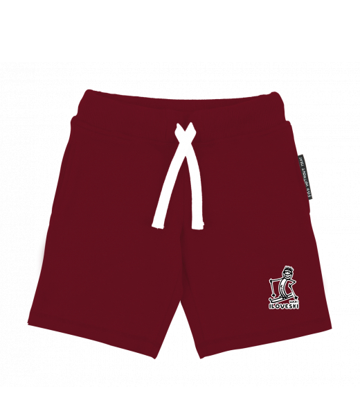 Dětské kraťasy s originálním potiskem pro děti s potiskem 1122 I LOVE SKI v barvě DARK RED