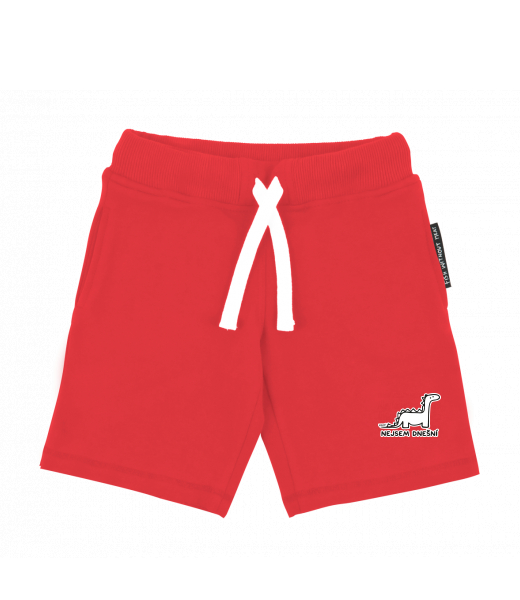 Dětské kraťasy s originálním potiskem pro děti s potiskem 1209 NEJSEM DNEŠNÍ v barvě RED