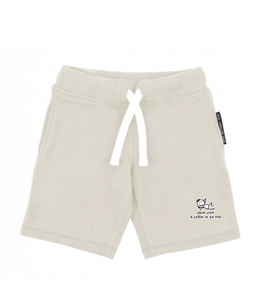 Dětské kraťasy s originálním potiskem pro děti s potiskem 1217 JSEM LÍNÝ A LEŽÍM SI ZA TÍM v barvě IVORY