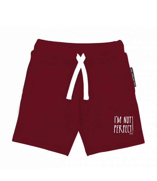 Dětské kraťasy s originálním potiskem pro děti s potiskem 1230 IM NOT PERFECT v barvě DARK RED
