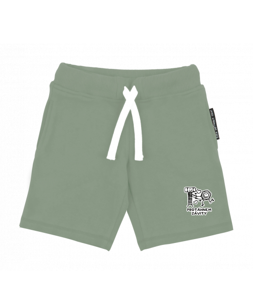 Dětské kraťasy s originálním potiskem pro děti s potiskem 1242 PROTÁHNEM ZÁVITY v barvě OLIVA