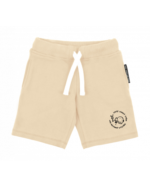 Dětské kraťasy s originálním potiskem pro děti s potiskem 1296 LEPŠÍ VINNÝ STŘIK JAK NEVINÝ VÝSTŘIK v barvě CARAMEL