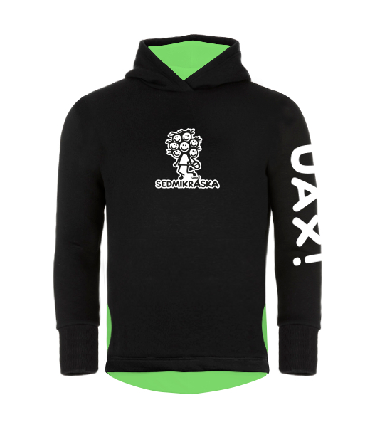 DĚTSKÁ ASYMETRICKÁ MIKINA s kapucí vylepšená o rostoucí rukávy, a extra hlbokou kapuci, která vypadá cool. Hladká zateplená mikina přes hlavu, s hlubokými kapsami na IPhone po boku má pohodlný střih a prodloužený spodní zadní lem. Pohodlná, praktická a více účelová unisex dětská mikina. Mix & Match - Vybírej z mnoha originálních potisků a kombinuj pestré barvy. Konfigurátor barev! Vyber si barvu jakou budou mít vnitřní kapsy, vnitřek kapuce a zadní vnitřní lem. Mikina je potisknutá nápisem UAX! na levém rukávu.