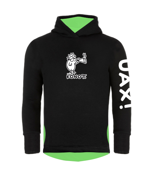 DĚTSKÁ ASYMETRICKÁ MIKINA s kapucí vylepšená o rostoucí rukávy, a extra hlbokou kapuci, která vypadá cool. Hladká zateplená mikina přes hlavu, s hlubokými kapsami na IPhone po boku má pohodlný střih a prodloužený spodní zadní lem. Pohodlná, praktická a více účelová unisex dětská mikina. Mix & Match - Vybírej z mnoha originálních potisků a kombinuj pestré barvy. Konfigurátor barev! Vyber si barvu jakou budou mít vnitřní kapsy, vnitřek kapuce a zadní vnitřní lem. Mikina je potisknutá nápisem UAX! na levém rukávu.