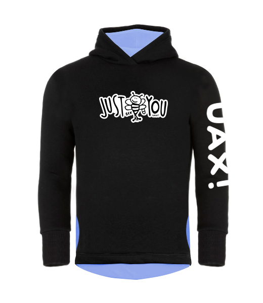 DĚTSKÁ ASYMETRICKÁ MIKINA s kapucí vylepšená o rostoucí rukávy, a extra hlbokou kapuci, která vypadá cool. Hladká zateplená mikina přes hlavu, s hlubokými kapsami na IPhone po boku má pohodlný střih a prodloužený spodní zadní lem. Pohodlná, praktická a více účelová unisex dětská mikina. Mix & Match - Vybírej z mnoha originálních potisků a kombinuj pestré barvy. Konfigurátor barev! Vyber si barvu jakou budou mít vnitřní kapsy, vnitřek kapuce a zadní vnitřní lem. Mikina je potisknutá nápisem UAX! na levém rukávu.