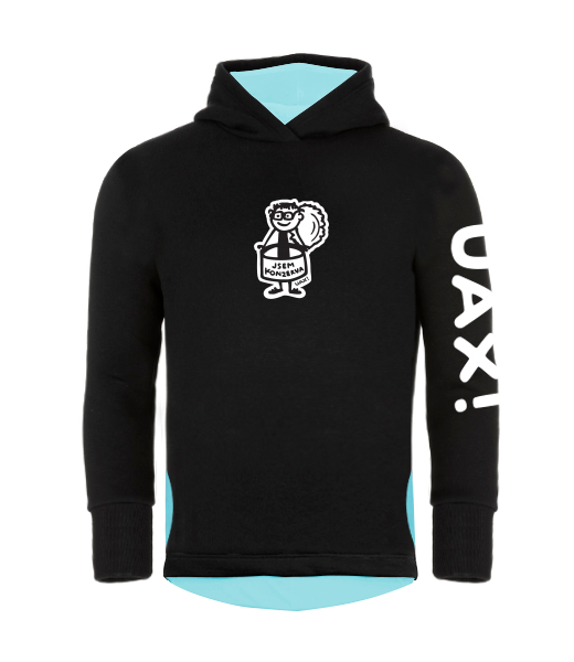 DĚTSKÁ ASYMETRICKÁ MIKINA s kapucí vylepšená o rostoucí rukávy, a extra hlbokou kapuci, která vypadá cool. Hladká zateplená mikina přes hlavu, s hlubokými kapsami na IPhone po boku má pohodlný střih a prodloužený spodní zadní lem. Pohodlná, praktická a více účelová unisex dětská mikina. Mix & Match - Vybírej z mnoha originálních potisků a kombinuj pestré barvy. Konfigurátor barev! Vyber si barvu jakou budou mít vnitřní kapsy, vnitřek kapuce a zadní vnitřní lem. Mikina je potisknutá nápisem UAX! na levém rukávu.