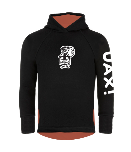 DĚTSKÁ ASYMETRICKÁ MIKINA s kapucí vylepšená o rostoucí rukávy, a extra hlbokou kapuci, která vypadá cool. Hladká zateplená mikina přes hlavu, s hlubokými kapsami na IPhone po boku má pohodlný střih a prodloužený spodní zadní lem. Pohodlná, praktická a více účelová unisex dětská mikina. Mix & Match - Vybírej z mnoha originálních potisků a kombinuj pestré barvy. Konfigurátor barev! Vyber si barvu jakou budou mít vnitřní kapsy, vnitřek kapuce a zadní vnitřní lem. Mikina je potisknutá nápisem UAX! na levém rukávu.