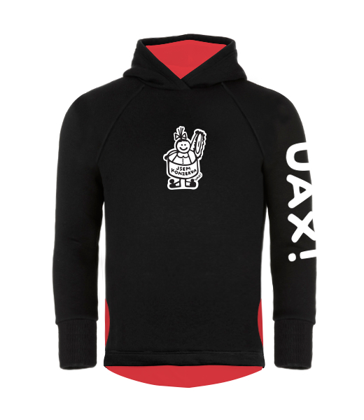 DĚTSKÁ ASYMETRICKÁ MIKINA s kapucí vylepšená o rostoucí rukávy, a extra hlbokou kapuci, která vypadá cool. Hladká zateplená mikina přes hlavu, s hlubokými kapsami na IPhone po boku má pohodlný střih a prodloužený spodní zadní lem. Pohodlná, praktická a více účelová unisex dětská mikina. Mix & Match - Vybírej z mnoha originálních potisků a kombinuj pestré barvy. Konfigurátor barev! Vyber si barvu jakou budou mít vnitřní kapsy, vnitřek kapuce a zadní vnitřní lem. Mikina je potisknutá nápisem UAX! na levém rukávu.