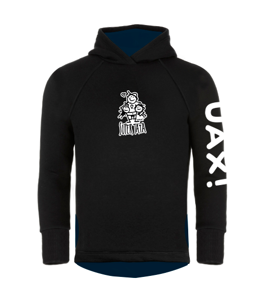 DĚTSKÁ ASYMETRICKÁ MIKINA s kapucí vylepšená o rostoucí rukávy, a extra hlbokou kapuci, která vypadá cool. Hladká zateplená mikina přes hlavu, s hlubokými kapsami na IPhone po boku má pohodlný střih a prodloužený spodní zadní lem. Pohodlná, praktická a více účelová unisex dětská mikina. Mix & Match - Vybírej z mnoha originálních potisků a kombinuj pestré barvy. Konfigurátor barev! Vyber si barvu jakou budou mít vnitřní kapsy, vnitřek kapuce a zadní vnitřní lem. Mikina je potisknutá nápisem UAX! na levém rukávu.