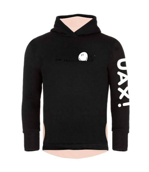 DĚTSKÁ ASYMETRICKÁ MIKINA s kapucí vylepšená o rostoucí rukávy, a extra hlbokou kapuci, která vypadá cool. Hladká zateplená mikina přes hlavu, s hlubokými kapsami na IPhone po boku má pohodlný střih a prodloužený spodní zadní lem. Pohodlná, praktická a více účelová unisex dětská mikina. Mix & Match - Vybírej z mnoha originálních potisků a kombinuj pestré barvy. Konfigurátor barev! Vyber si barvu jakou budou mít vnitřní kapsy, vnitřek kapuce a zadní vnitřní lem. Mikina je potisknutá nápisem UAX! na levém rukávu.