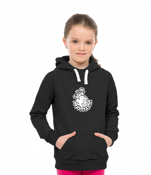 Dětská mikina LIGHT přes hlavu s kapucí a potiskem pro děti s potiskem 1047 SVĚTOBĚŽNÍK v barvě BLACK