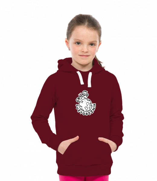 Dětská mikina LIGHT přes hlavu s kapucí a potiskem pro děti s potiskem 1047 SVĚTOBĚŽNÍK v barvě DARK RED