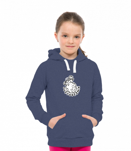 Dětská mikina LIGHT přes hlavu s kapucí a potiskem pro děti s potiskem 1047 SVĚTOBĚŽNÍK v barvě JEANS