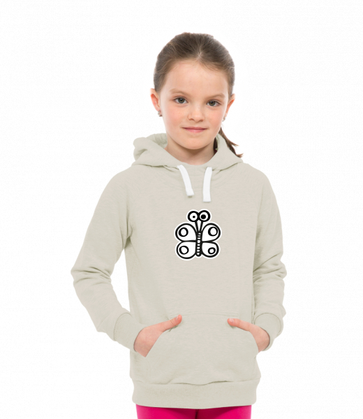 Dětská mikina LIGHT přes hlavu s kapucí a potiskem pro děti s potiskem 1154 MOTÝL v barvě IVORY