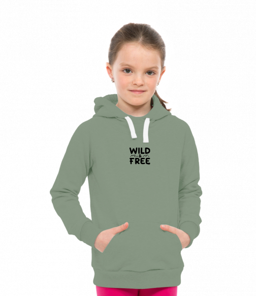 Dětská mikina LIGHT přes hlavu s kapucí a potiskem pro děti s potiskem 1161 WILD AND FREE v barvě OLIVA
