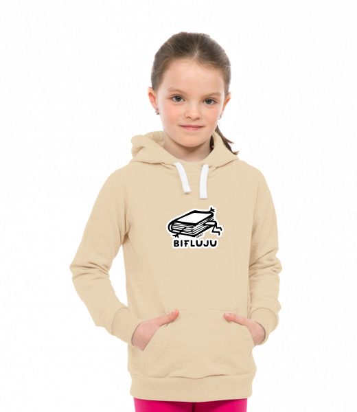 Dětská mikina LIGHT přes hlavu s kapucí a potiskem pro děti s potiskem 1281 BIFLUJU v barvě CARAMEL
