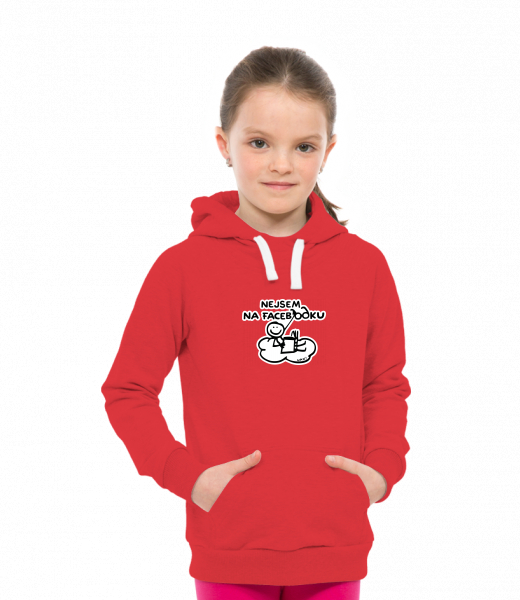 Dětská mikina LIGHT přes hlavu s kapucí a potiskem pro děti s potiskem 1282 NEJSEM NA FACEBOOKU v barvě RED