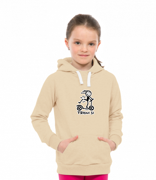 Dětská mikina LIGHT přes hlavu s kapucí a potiskem pro děti s potiskem 1357 TRHNI SI NOHOU v barvě CARAMEL