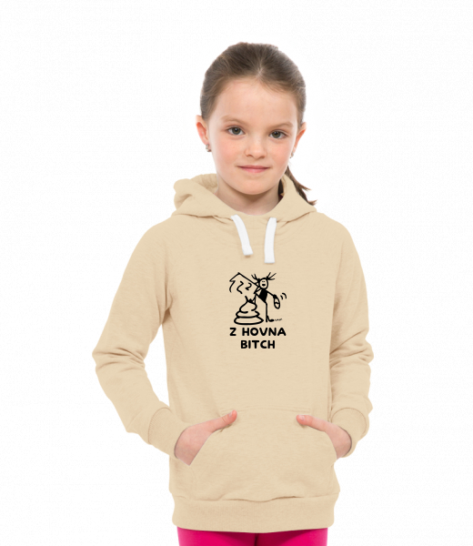 Dětská mikina LIGHT přes hlavu s kapucí a potiskem pro děti s potiskem 1392 Z HOVNA BITCH v barvě CARAMEL
