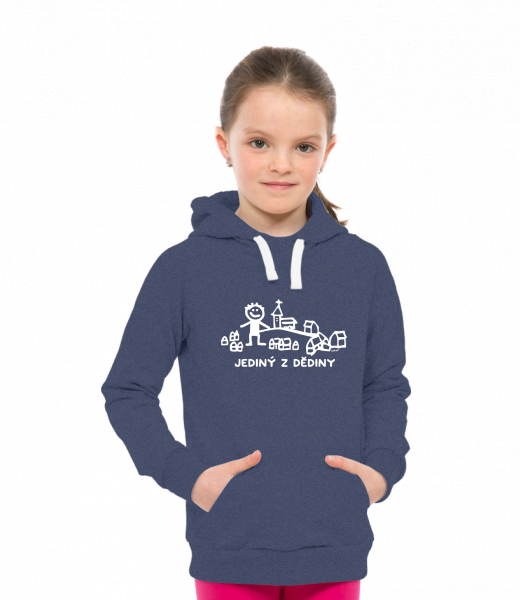 Dětská mikina LIGHT přes hlavu s kapucí a potiskem pro děti s potiskem 1393 JEDINÝ Z DĚDINY v barvě JEANS