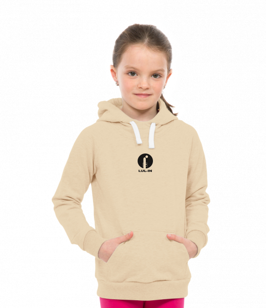 Dětská mikina LIGHT přes hlavu s kapucí a potiskem pro děti s potiskem 620 LUL IN v barvě CARAMEL