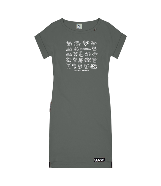 Vyrábíme udržitelné oblečení UAX! - ručně šité v Česku uaxDěti uaxVšechny produktyŠatyDĚTSKÉ ŠATY BASICpotisk 1168 - UAX! ANIMALSDARK GRAY