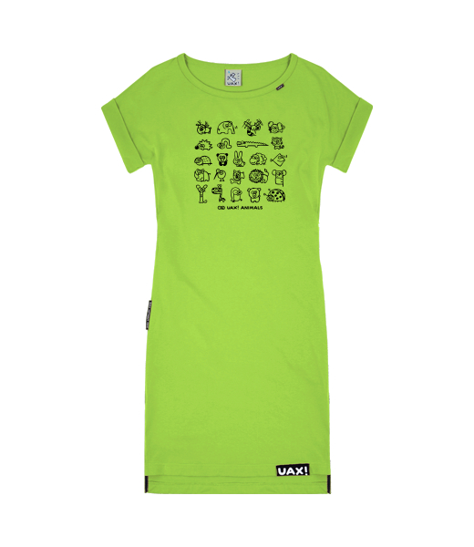Vyrábíme udržitelné oblečení UAX! - ručně šité v Česku uaxDěti uaxVšechny produktyŠatyDĚTSKÉ ŠATY BASICpotisk 1168 - UAX! ANIMALSPARROT GREEN