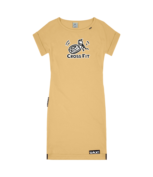 Vyrábíme udržitelné oblečení UAX! - ručně šité v Česku uaxDěti uaxVšechny produktyŠatyDĚTSKÉ ŠATY BASICpotisk 5167 - CROSSFIT PNEUMUSTARD