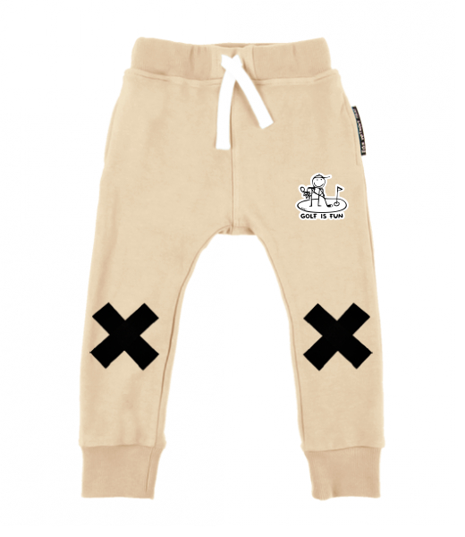 Vyrábíme udržitelné oblečení UAX! - ručně šité v Česku uaxDěti uaxVšechny produktyTepláky a kalhotyDĚTSKÉ TEPLÁKY SLIM CROSSpotisk 1057 - GOLF IS FUNCARAMEL