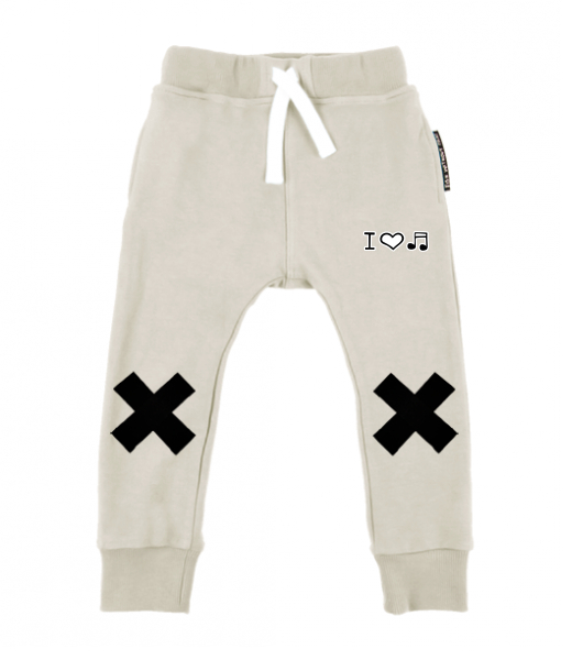 Dětské tepláky slim CROSS pro děti s potiskem 1067 I LOVE MUSIC v barvě IVORY
