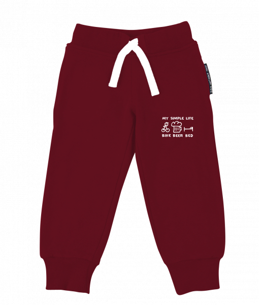 Dětské tepláky s originálním potiskem pro děti s potiskem 1056 BIKE BEER BED v barvě DARK RED