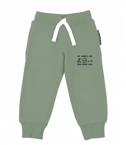 Dětské tepláky s originálním potiskem pro děti s potiskem 1056 BIKE BEER BED v barvě OLIVA