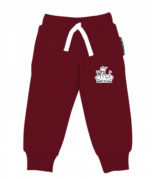 Dětské tepláky s originálním potiskem pro děti s potiskem 1057 GOLF IS FUN v barvě DARK RED