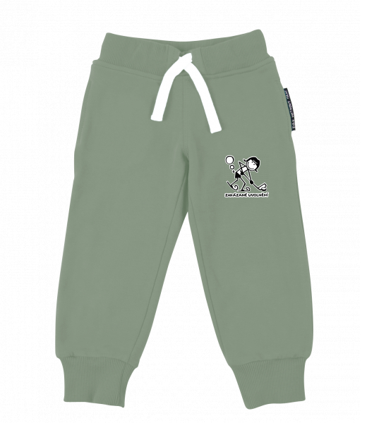 Dětské tepláky s originálním potiskem pro děti s potiskem 1059 ZAKÁZANÉ UVOLNĚNÍ v barvě OLIVA