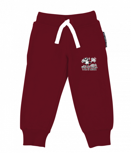 Dětské tepláky s originálním potiskem pro děti s potiskem 1060 I AM A PANDA v barvě DARK RED