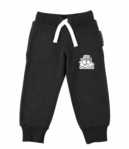 Dětské tepláky s originálním potiskem pro děti s potiskem 1089 TY VOLE I LOVE v barvě BLACK