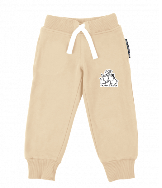 Dětské tepláky s originálním potiskem pro děti s potiskem 1089 TY VOLE I LOVE v barvě CARAMEL
