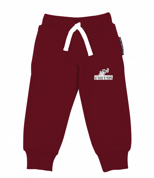 Dětské tepláky s originálním potiskem pro děti s potiskem 1118 PO TRÁVĚ SE SMĚJE v barvě DARK RED