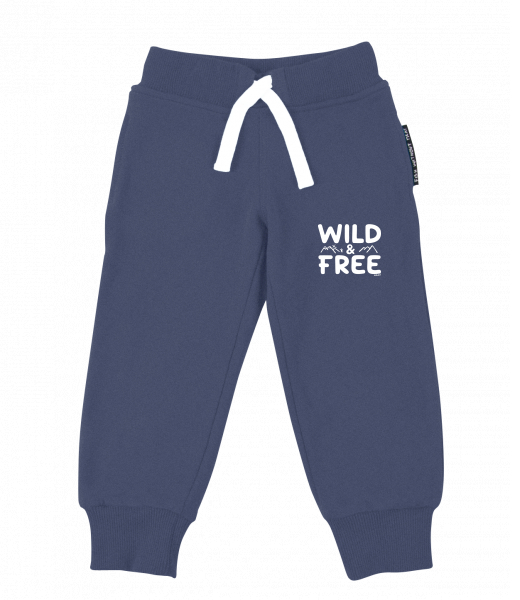 Dětské tepláky s originálním potiskem pro děti s potiskem 1161 WILD AND FREE v barvě JEANS